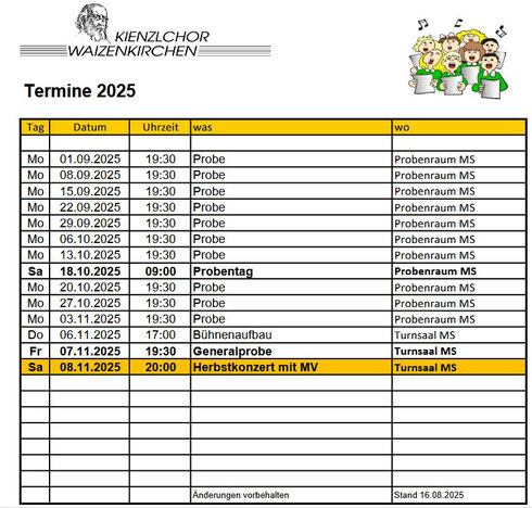 Mo. | 20.10.2025 | 19:30 Uhr | Chorprobe | Probenraum MS |